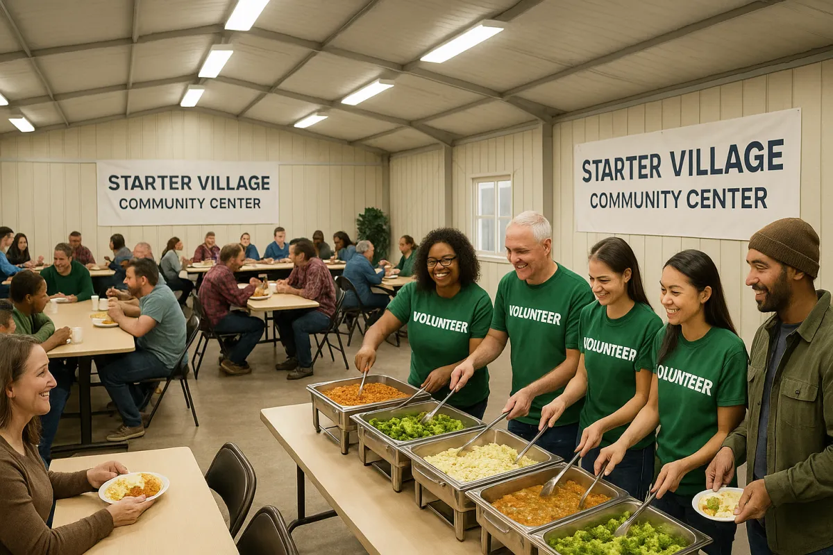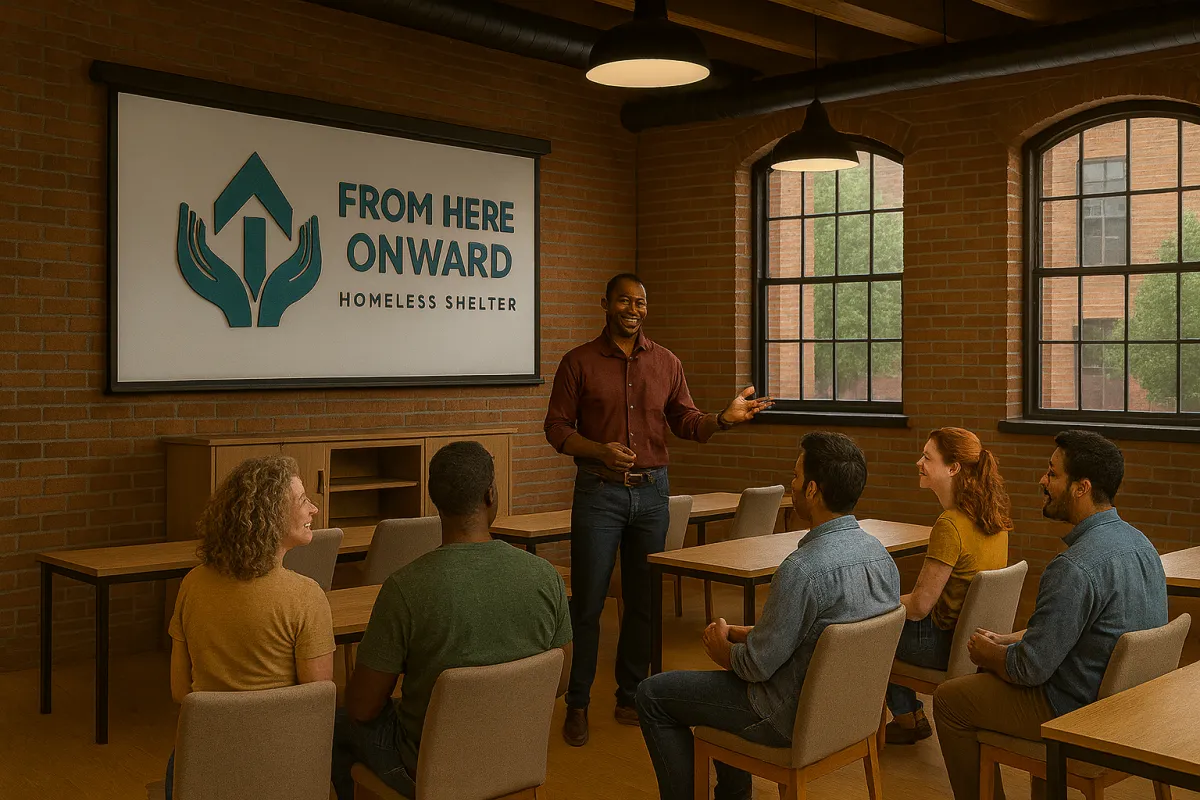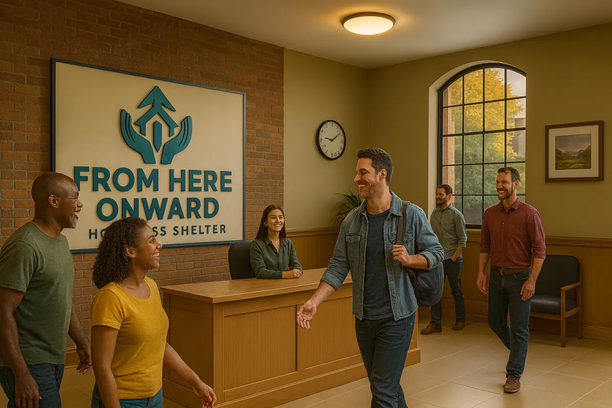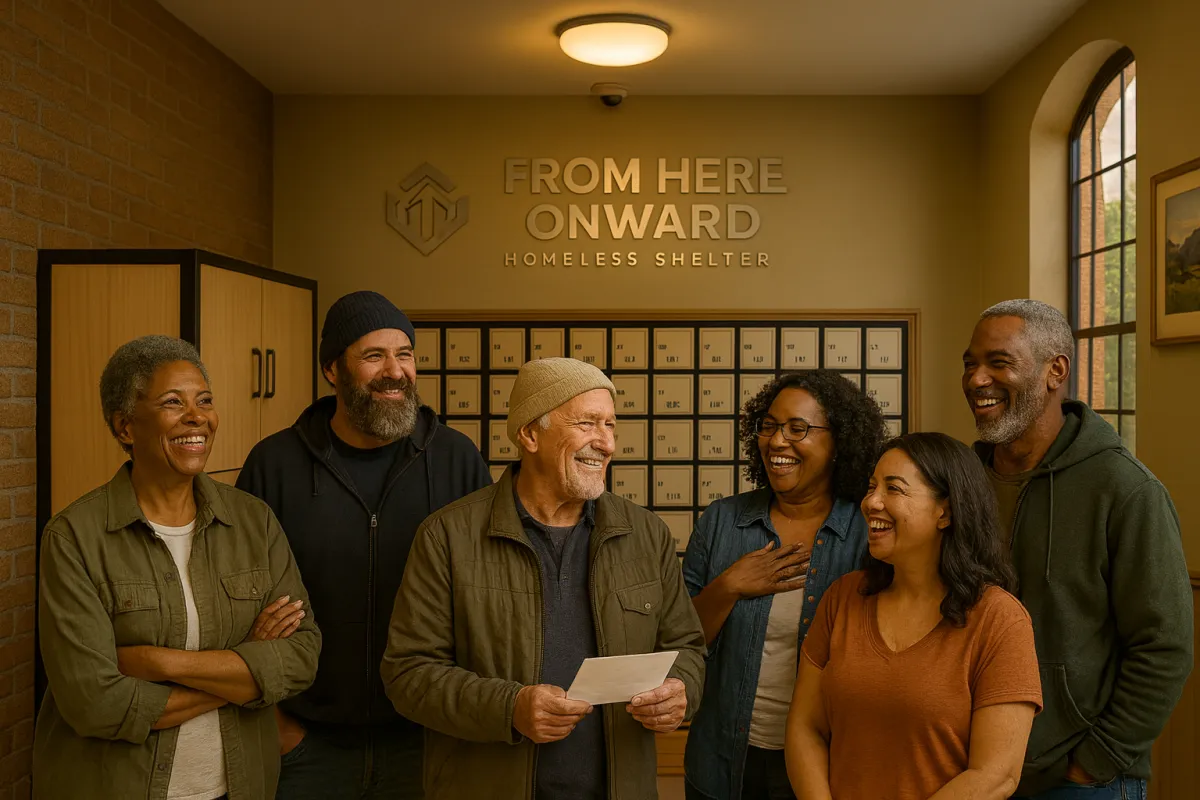 Participants begin in the From Here Onward Homeless Shelter, where they find immediate safety, case management, and supportive services. This short-term shelter sets the foundation for stability and prepares residents to move into Starter Village.